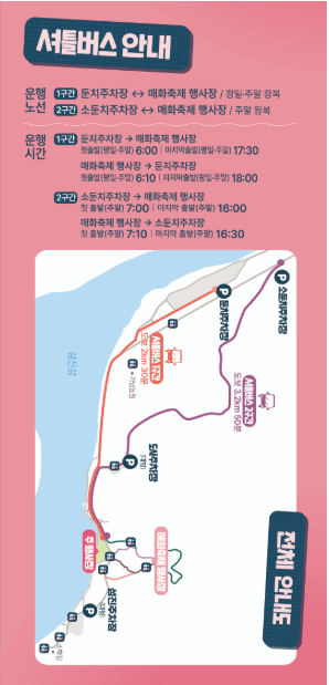 • 셔틀버스: 주차장에서 축제장까지 무료로 운행됩니다.